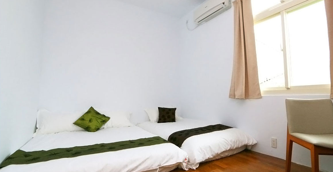 房型名稱 平日 假日 定價 301三人房 $2000元 $2300元 $2700元 302二人房 $1450元 $1700元 $2000元 201四人房 $2500元 $2900元 $3600元 202三人房 $2000元 $2300元 $2700元 203二人房 $1450元 $1700元 $2000元 包層(2F) $5100元 $5900元 -- 包層(3F) $3000元 $3600元 -- 包棟(14人) $8000元 $9000元 $11000元 加人 $500元/人 $550元/人 $600元/人
